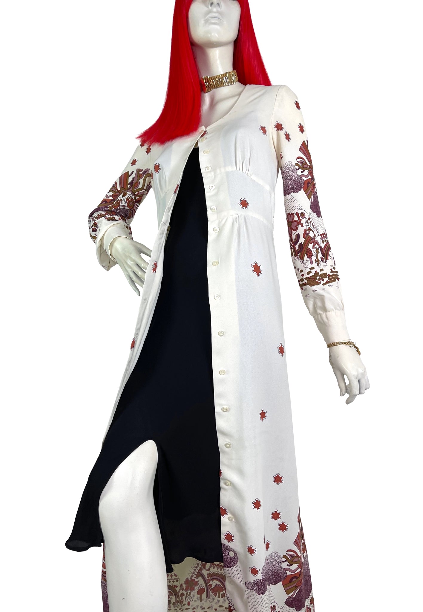 Crowthers 1960s 70s vintage psychedelic maxi dress / mushroom print / RARE