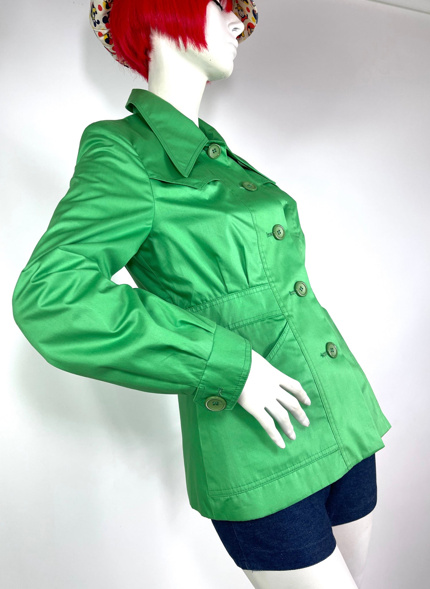 1960s 70s vintage apple green trench jacket / mini mac / Mod / Rain mac / Twiggy