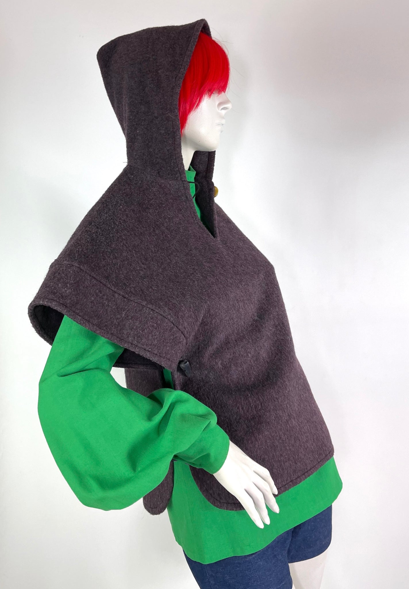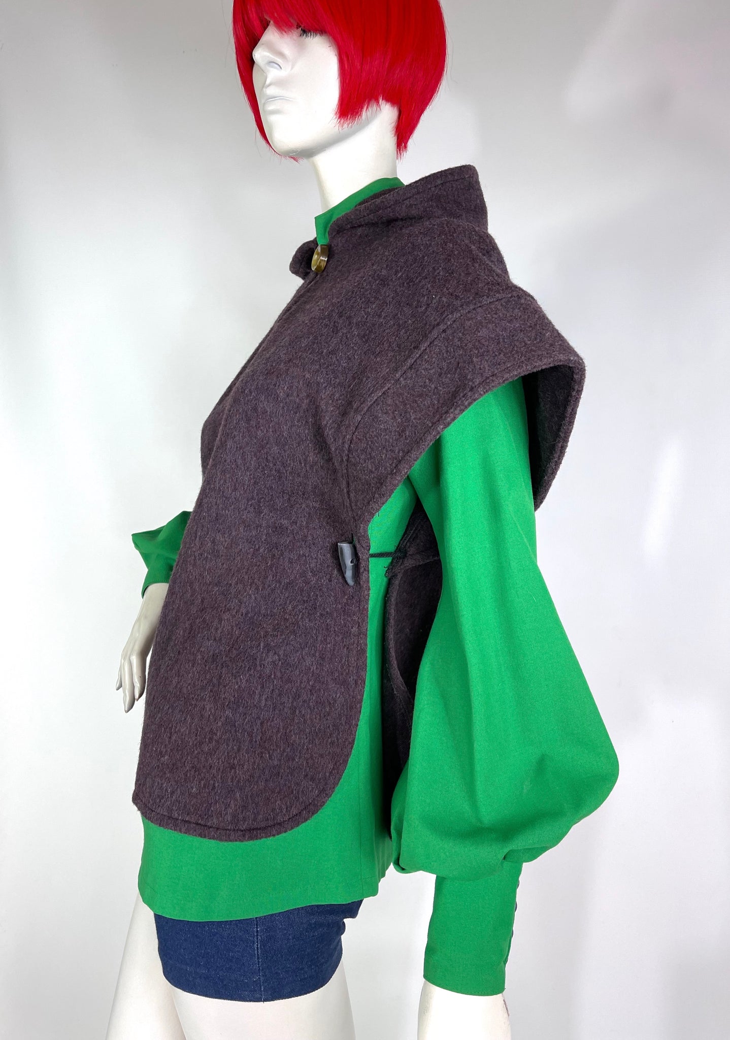 1970s vintage plum wool cape / jacket / coat / Mod / hood / autumn / hippie / boho