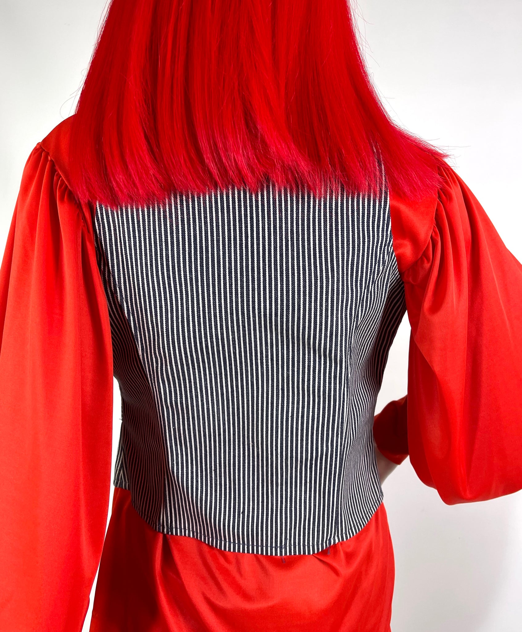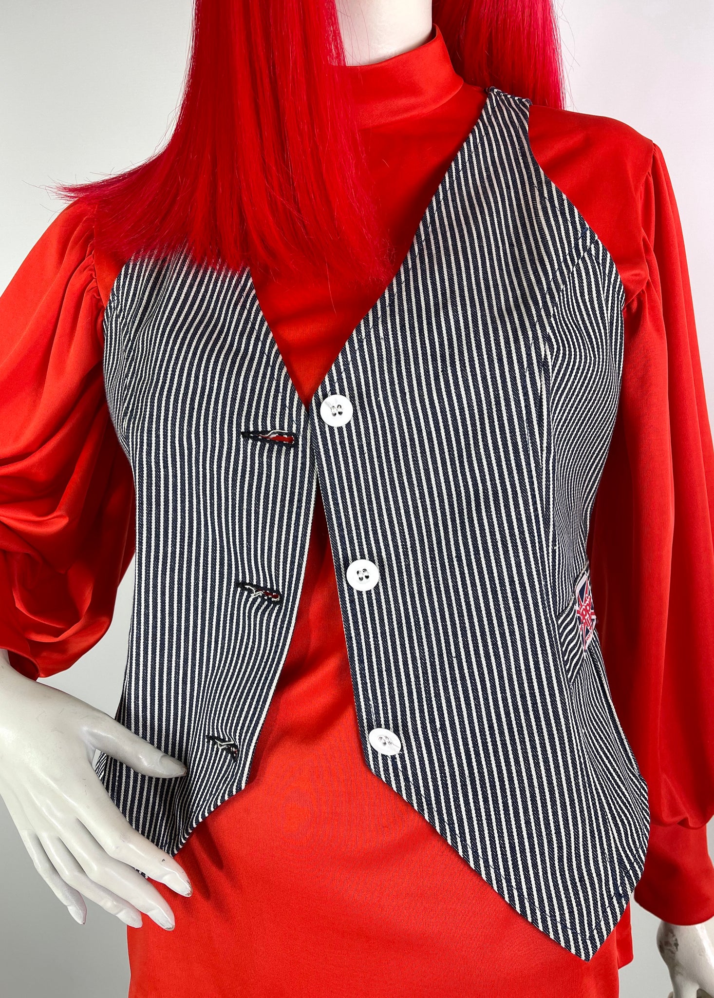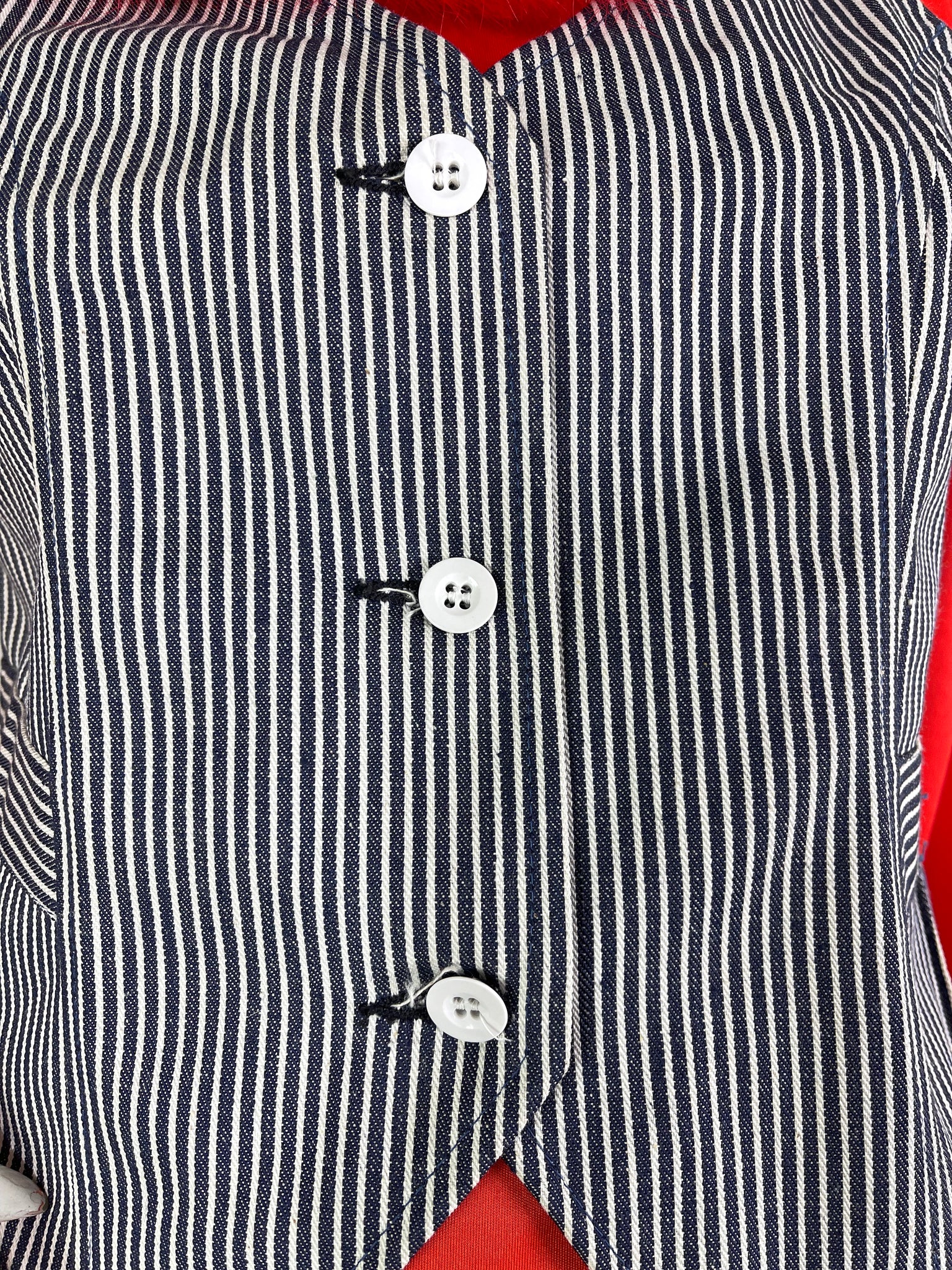 Amazing early 70s white & navy striped denim waistcoat!