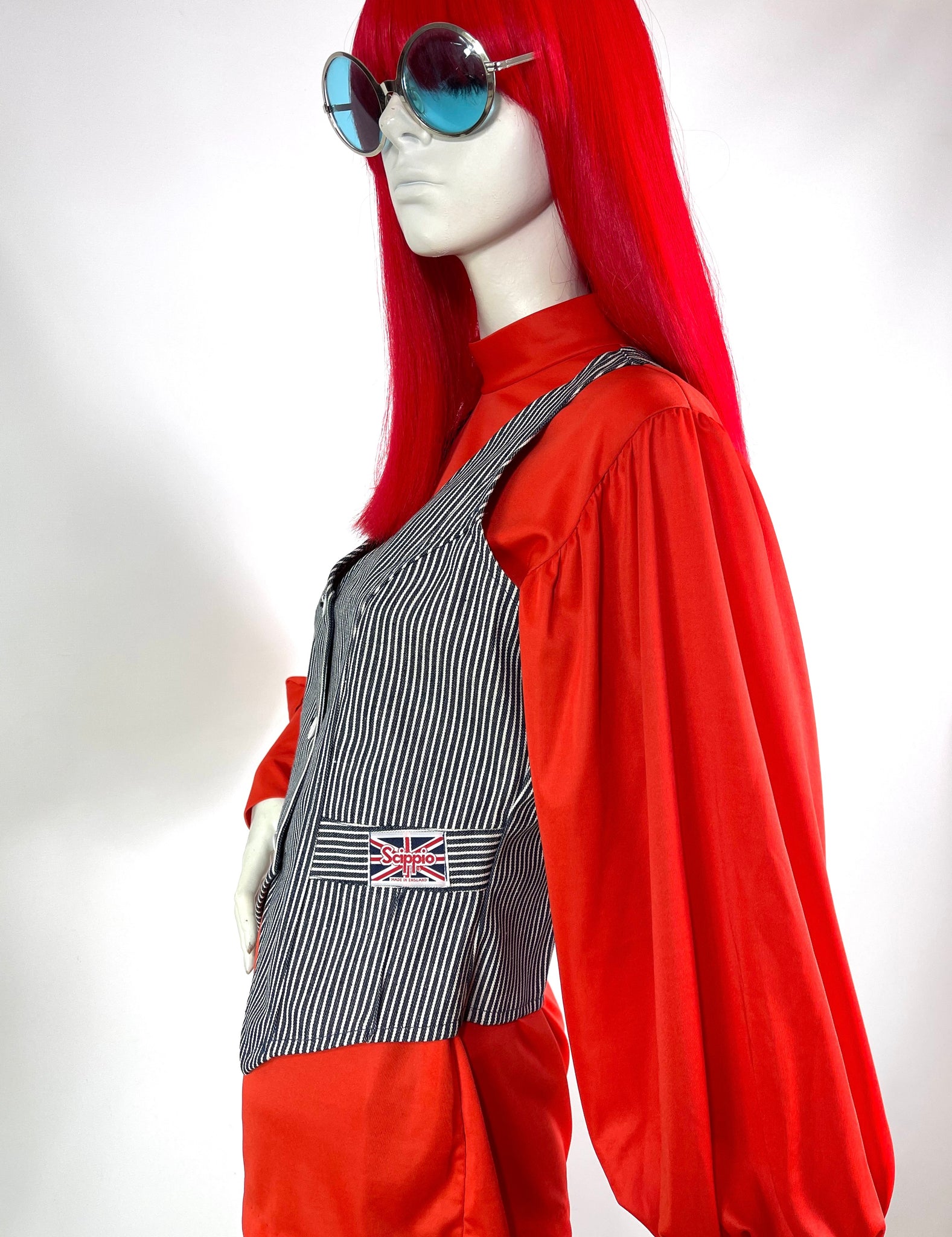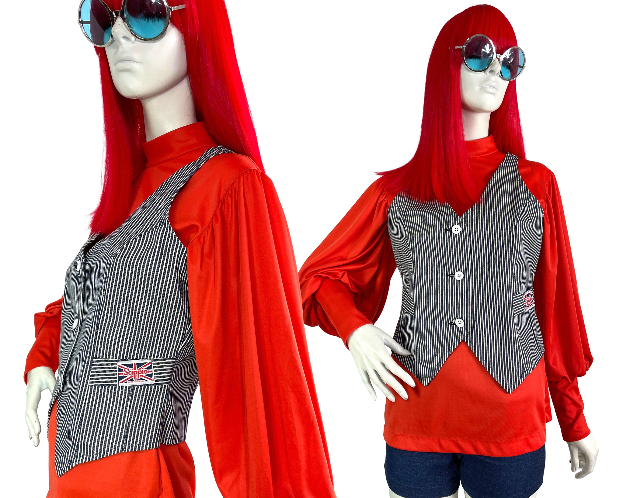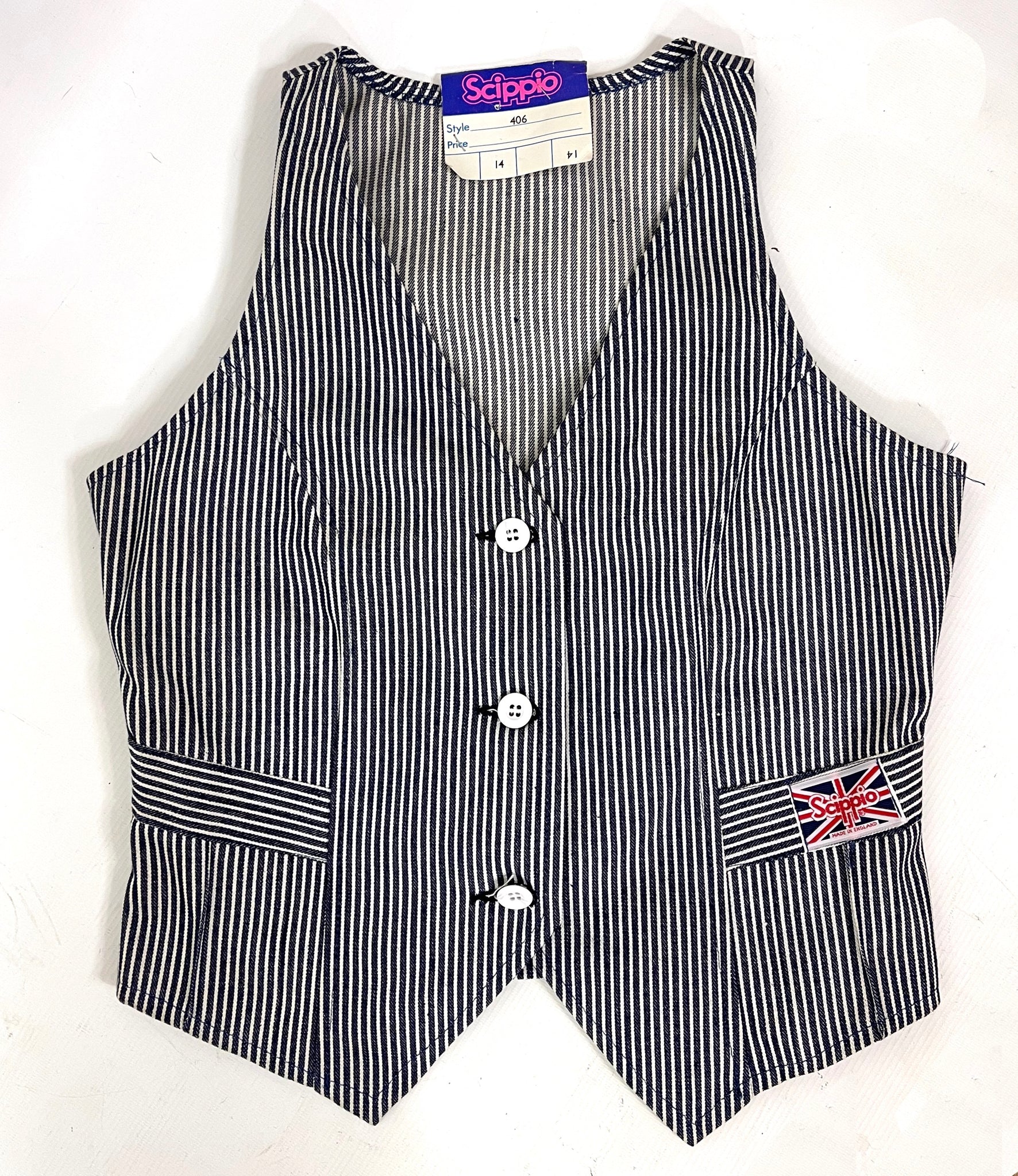 The vest features three white statement buttons at the front and a fun union jack ;label patch at the left hand side...see photos....